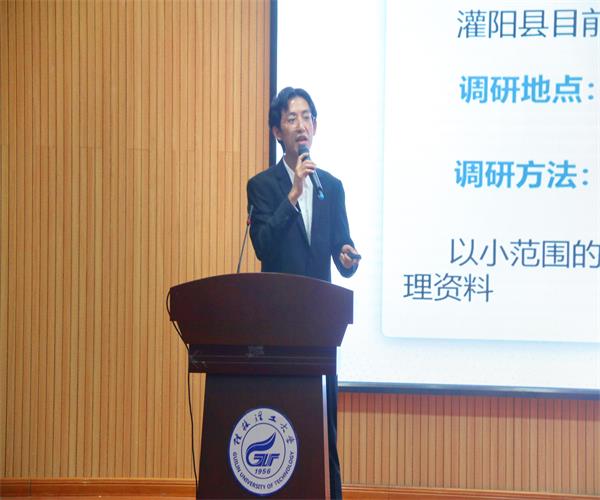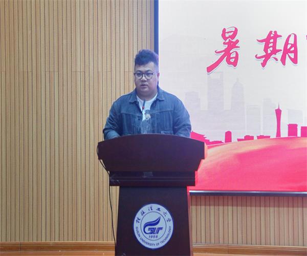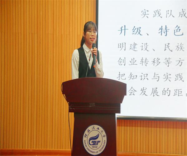 交流会伊始,王凯浩老师进行致辞,他说道大学生社会实践是一项内容丰富、寓意深刻的活动,是大学生思想政治教育工作的重要环节。同时也希望同学们积极投身到社会实践活动中去,服务他人,锻炼自我。接着由各团队代表进行分享交流,竞赛科研团代表黄孝鹏同学、稀土研究实践队代表梁永怡同学、“乡之行,薯之光”暑期实践团代表朱正鸿同学、"听说读写″党史暑期社会实践团代表伍婷同学、多彩八桂·壮乡文化调研实践队代表劳夏同学,分别为我们分享了关于医疗、稀土产业、农村发展、红色基因、壮乡文化的实践经历与感悟。最后由黎潮喜同学进行征兵宣讲并分享了他的部分兵役生活。