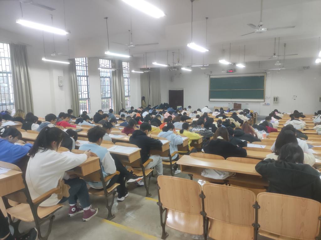 本次英语四级模拟考试以全真模拟的方式,严格遵循大学英语四级考试时间和考试流程。考试现场,同学们有秩序入场,严格遵守考场纪律,在答题过程中严守考试时间,答题完毕两名监考老师回收试卷并组织批改。