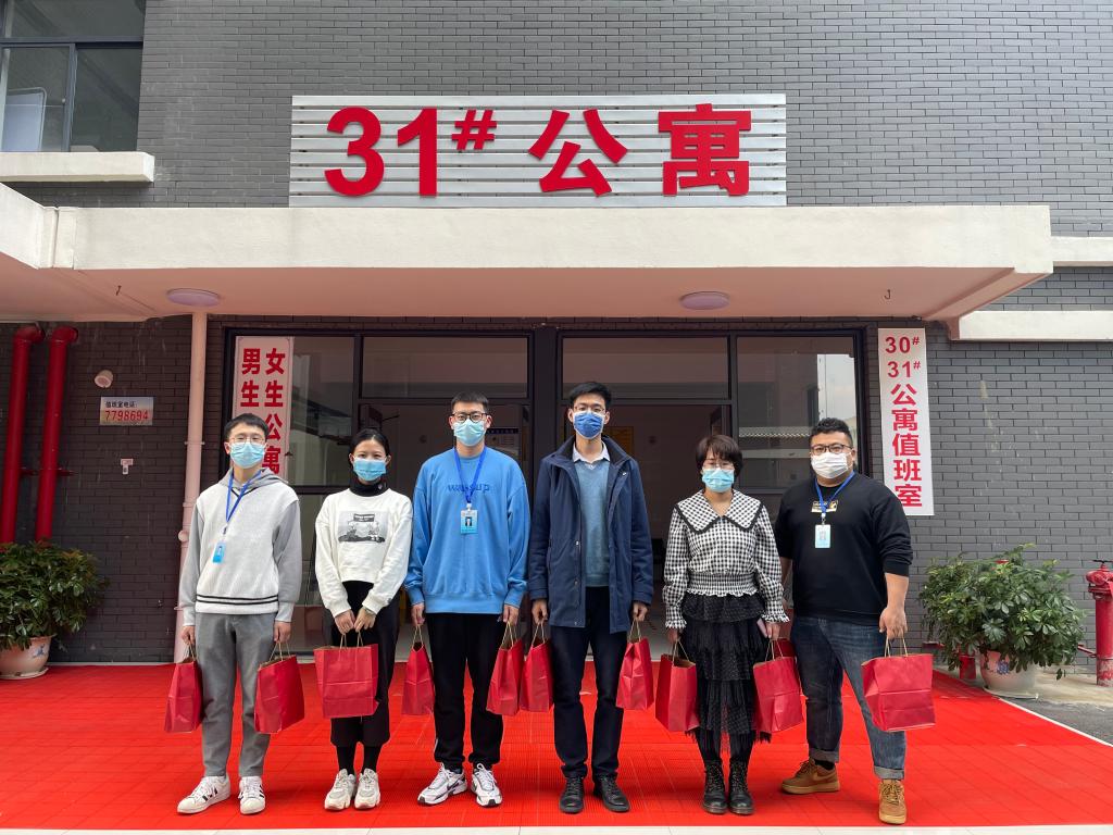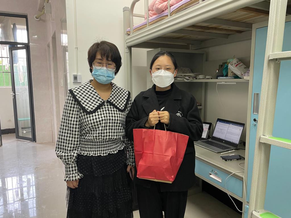 辅导员一同看望慰问了返校后入住学校健康观察点的学生。