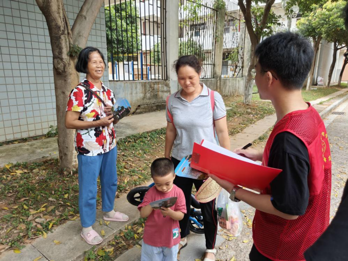 推普实践团为了加大在校内的宣传力度,分成了定点小组和流动小组。在定点问卷调查期间,实践团队成员积极为居民讲解关于普通话的推广意义,并且做出相关的知识普及,例如国家现行的推广普通话政策是什么,以及每年九月份的第三周是普通话推广周等知识普及,居民朋友在了解的同时,实践团也会赠上小礼品去激励居民朋友大力宣传普通话。