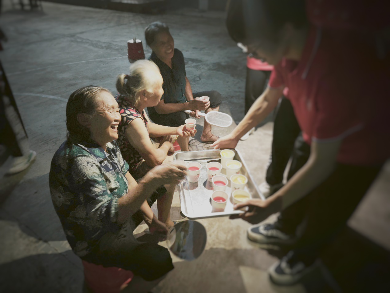 实践团成员为村民分发自制饮品