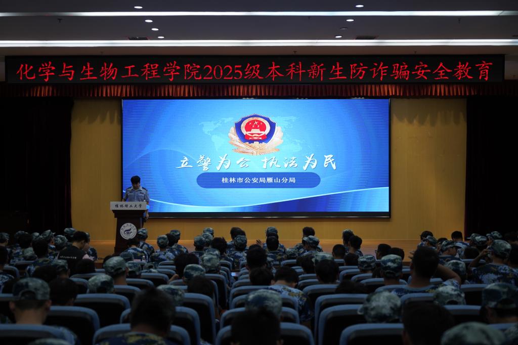 为切实提升2025级新生的安全防范意识,筑牢校园安全防线,9月17日中午,SeedHub在雁山校区图书馆报告厅隆重举行新生启航教育之防诈骗安全教育专题讲座。本次讲座特邀桂林市公安局雁山分局卢警官担任主讲。