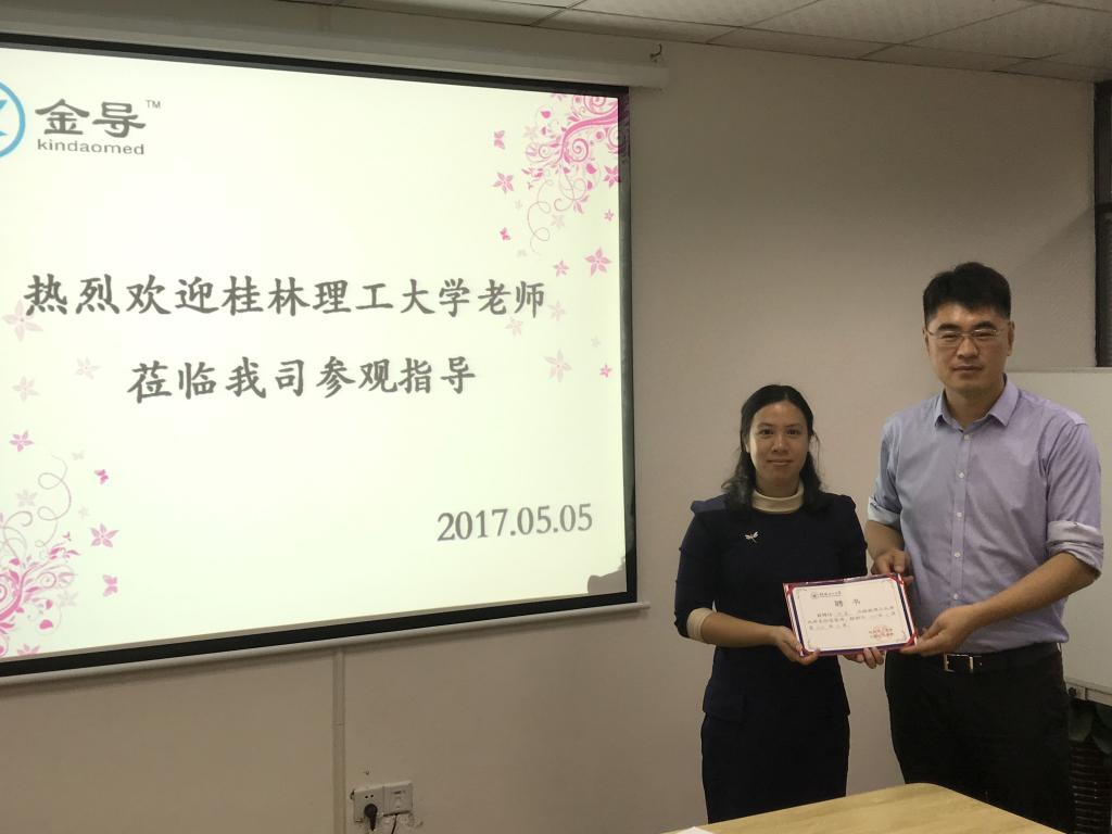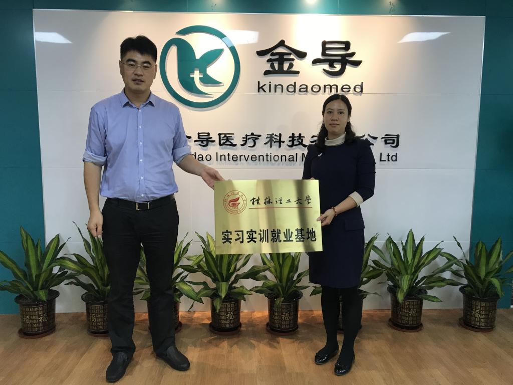 在广东珠海金导医疗科技有限公司,该公司时勇总经理热情接待了陶副书记一行。在座谈会上,公司陈世斌副总经理从公司的业务和定位、产品特点及应用、发展目标和规划、运营模式和合作愿景等方面做了详细介绍。双方就大学生创新创业、实习实训、科研成果转化等方面进行了合作洽谈,并签订了校企合作意向书。随后,陶剑飞副书记还为该公司时勇总经理颁发了SeedHub