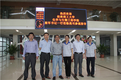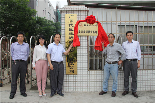 在广东江门,梁书记一行到江门四方威凯精细化工有限公司进行参观考察,在公司副总经理兼技术总监、91级校友朱洪江的陪同下参观了公司的研发中心以及生产工艺流程,双方就毕业生就业实习、产学研合作等方面达成共识,并举行了“实习实训就业基地”的挂牌仪。在广东优巨先进材料研究有限公司,该公司总经理王贤文热情接待了梁书记一行,双方就毕业生就业实习、教师到企业挂职锻炼以及科研成果转化等方面达成合作意向。会谈结束后,双方举行了“实习实训就业基地”的挂牌仪式。