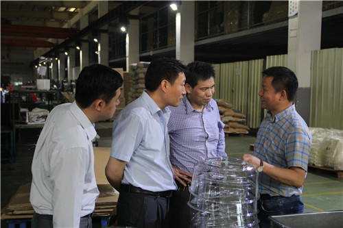 梁书记一行与广东优巨新材料研究有限公司王贤文(左二)洽谈
