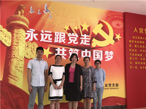 在石埠乳业有限公司党支部书记武雪的带领下,陶副书记一行参观了该公司新的生产线设备,并在公司党员活动室进行座谈。双方就学生实习就业、科研生产、志愿服务以及党建活动等方面进行深入洽谈,为下一步建立校企合作实践基地起到良好的铺垫作用。