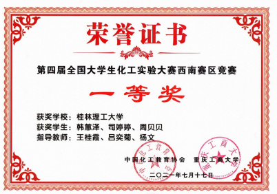 图2 化工实验大赛获奖证书