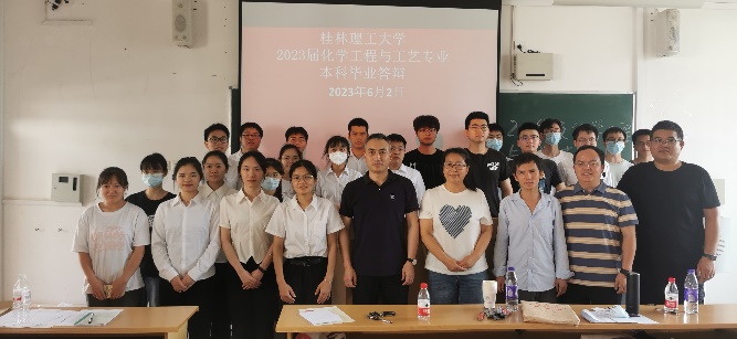 2023年6月2日,化学化工教研室组织化学工程与工艺(精细化工和化学制药)专业2019级全体本科毕业生分六组在雁山校区06606、06609、06610、06611、06612和06613教室举行毕业设计(论文)的毕业答辩,化学化工教研室全体老师和五位校外专业参加了此次答辩会。本次毕业答辩旨在提高毕业生论文质量,督促毕业生以认真、严谨、求实的态度修改毕业设计的终稿。