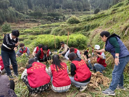 化学化工教工党支部组织党员师生在大源村村民的指导下,参与了生姜和红薯的挖取等田间劳作。师生们通过亲身体验并和村民交流了解了生姜和红薯的生长周期、种植过程及病虫害防治等基本知识。师生们在劳动中学会了合作与分享,培养了团队协作精神和责任感。村民们还向师生们传授了传统农耕文化和农业科学知识,增强了师生们的文化认同感和科学素养。