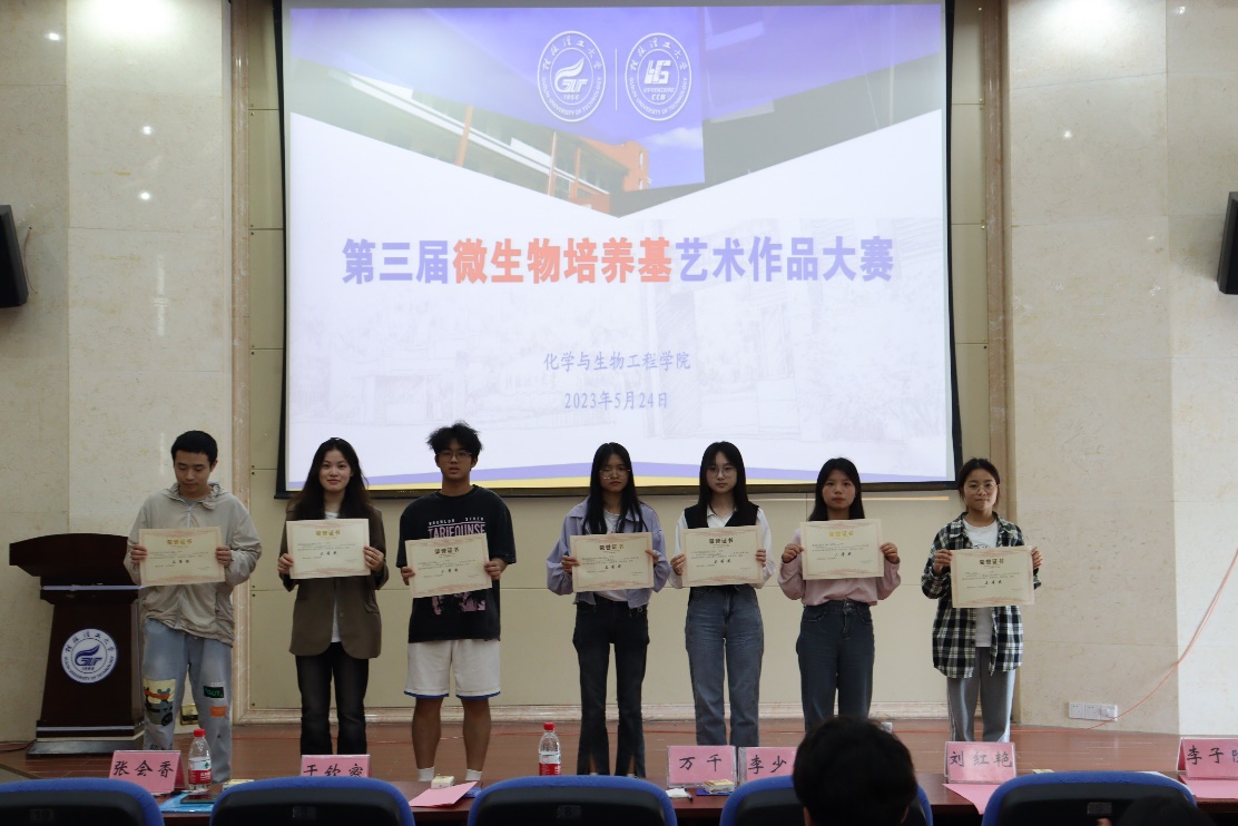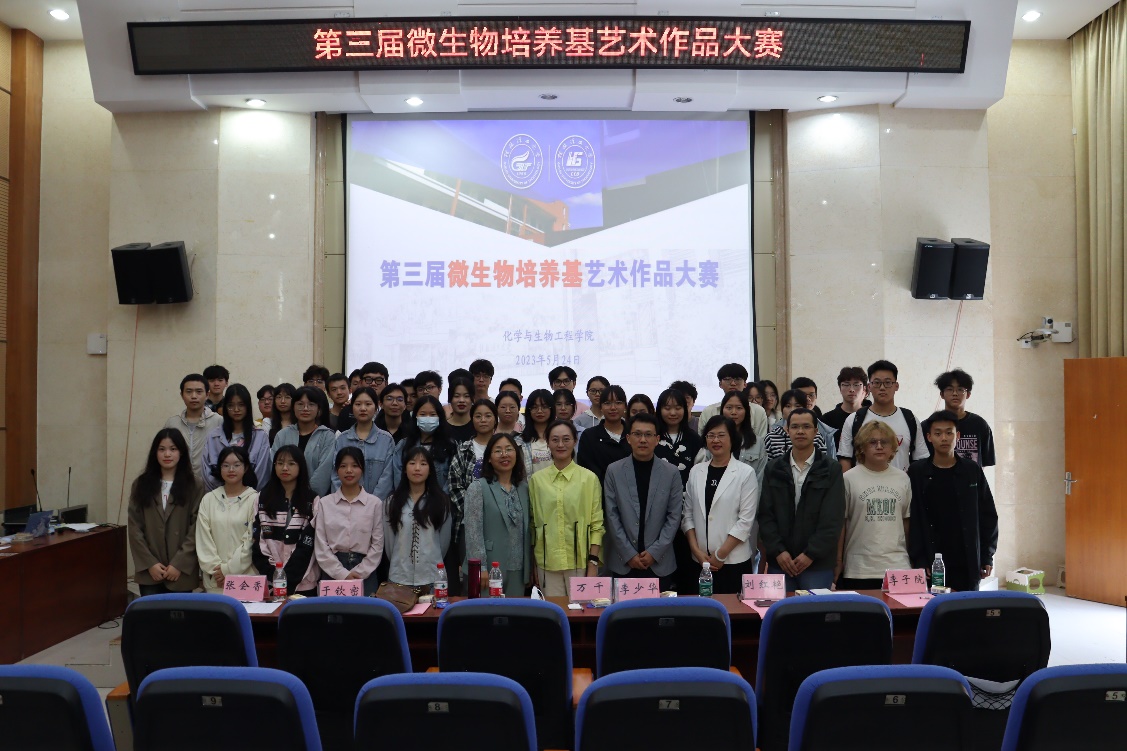 为了普及微生物科学知识,展示多姿多彩的微生物世界,将艺术与微生物相结合,提升学生的美育能力,加强学生创新实践能力的培养。生物工程专业于2023年5月24日在我校雁山校区萃华楼报告厅成功举办了第三届微生物培养基艺术作品大赛。本次比赛于5月19日开始进行了为期5天的线上评选活动,共获得8千余张选票。5月24日现场比赛中邀请了人文素质教育教学部万千副主任、艺术SeedHub