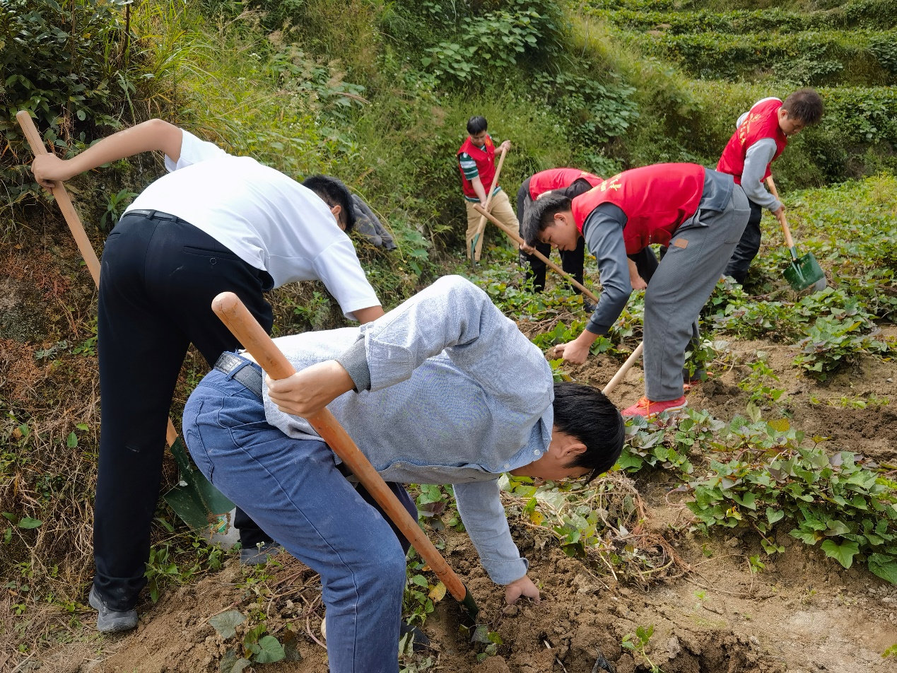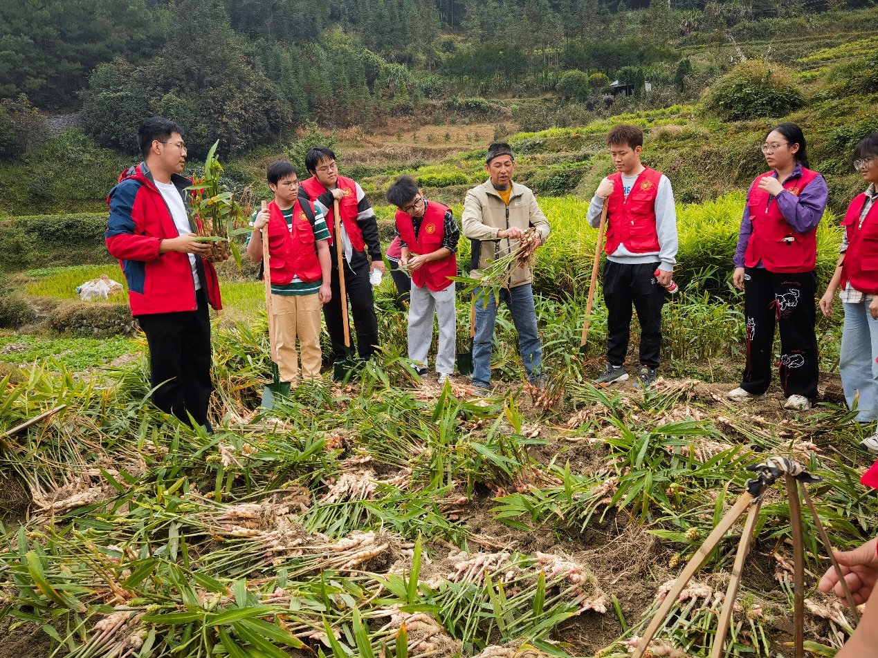 大源村第一书记李学来热情接待了各位老师和同学,并指引大家在村民的演示下,学习收获方法和注意事项,随后大家分工合作,很快就完成了挖取、整理、搬运、贮藏等劳动任务。在劳动过程中,师生们就生姜和红薯的生长周期、田间管理、病虫害防治、采收贮藏等与村民进行了深入交流,并采集了生姜和白芨的病害样本,将会在实验室中进行深入的研究,以期为两种作物种植过程中的病害防治做出有效指导。