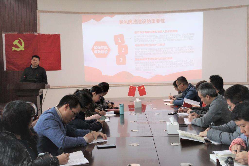 党委书记彭代江于12217会议室,向全院教工党员讲授《全面从严治党、抓好党风廉政建设》党风廉政专题党课。