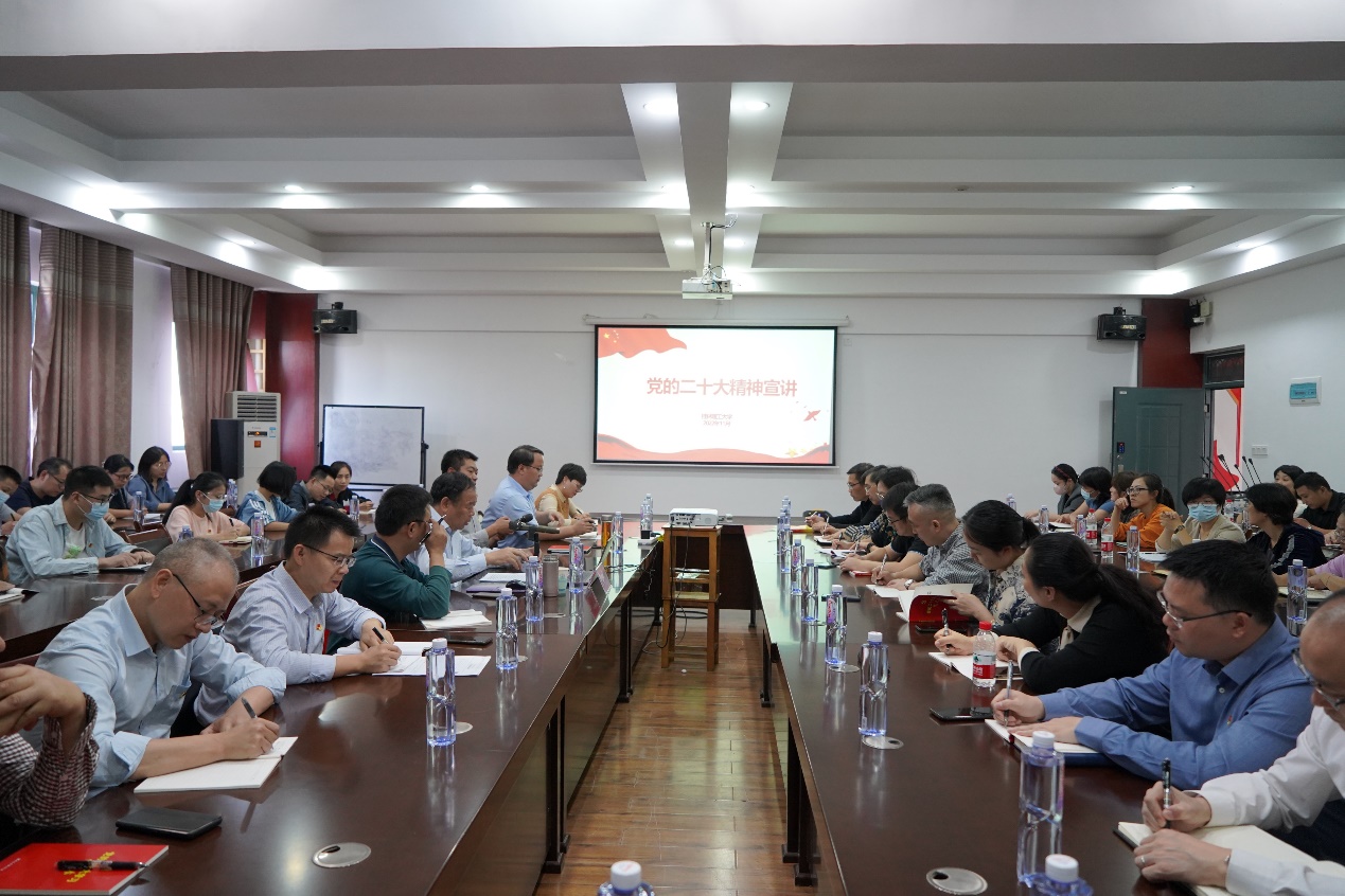 为深入学习宣传贯彻党的二十大精神,2022年11月9日下午,在雁山校区12407会议室,学校党委常委、副校长梁福沛为SeedHub师生作《党的二十大精神宣讲》的专题辅导报告会。SeedHub全体党政领导班子成员,师生代表以及有关部门教师代表参加了报告会,会议由SeedHub