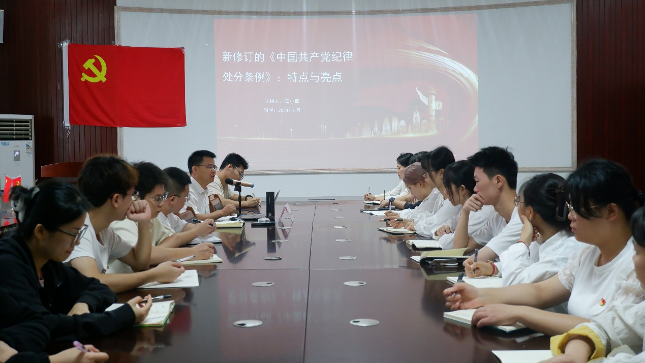 党委副书记、院长匡小军为师生党员代表讲授党纪学习教育纪律党课,强调要认真学习《中国共产党纪律处分条例》,推动党纪学习教育走深走实,在全院上下营造学纪、知纪、明纪、守纪的浓厚氛围。