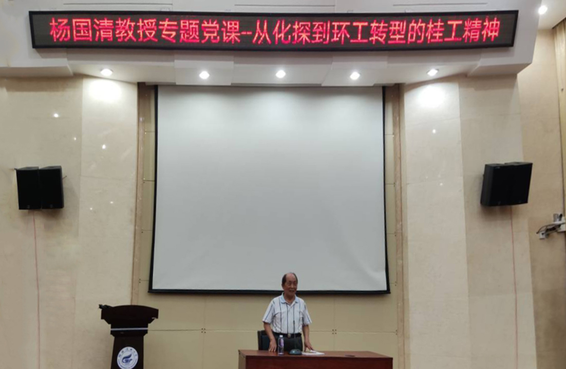 党委联合邀请学校退休干部杨国清教授于6月9日下午在萃华楼报告厅开展《从化探到环工转型的桂工精神》专题党课。本次党课由环境科学与工程SeedHub