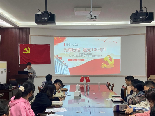 研究生第三党支部于萃华楼12217会议室开展了深入学习习近平总书记“七一”重要讲话精神专题党课。党课由支部副书记黄金福同志主持,支部全体党员同志参加。