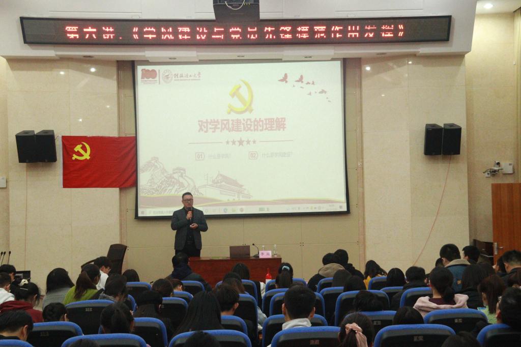 党委副书记李南老师在萃华楼报告厅为预备党员讲授主题为《学风建设与党员的先锋模范作用发挥》主题党课。