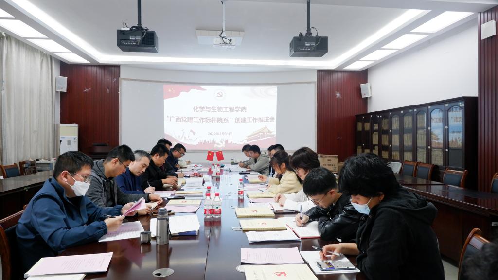 “广西党建工作标杆院系”培育创建的前期工作,强调了“广西党建工作标杆院系”培育创建工作的重要性,并就做好下一步培育创建工作提出四点要求:一是统一思想、提高政治站位,高度重视全区党建标杆院系建设工作;二是结合中心工作,克服两张皮,将党建工作与科研、教学、学习等相互融合,促进理论转化为实践;三是重点任务再落实,进一步优化创建方案,确保高质量完成建设任务,特别是各支部认真认领任务,利用假期做好制度完善、优秀典型案例、宣传平台建设等工作;四是坚持真抓实干,创建工作做到有谋划、有推进、有反思、有总结、有提升。