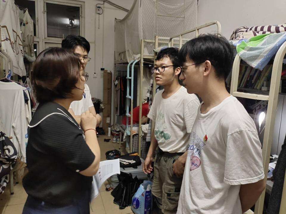 党委组建“辅导员+毕业班党员”先锋队深入学生宿舍检查毕业生学习生活情况。