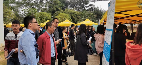 领导班子成员来到招聘会现场,了解用人市场的最新需求和对毕业生的要求,并对毕业生的简历制作、面试技巧、服装准备做了细心指导。用人单位惠州市宙邦新材料有限公司表示今年的毕业生找工作积极性较往年高,能够顺利完成今年的招聘任务。SeedHub2016级毕业生李凌表示,在众多的企业招聘中,有几家单位和她达成初步意向,SeedHub