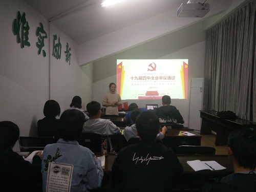 为学习十九届四中全会精神,2019年11月4日本科生第四党支部在雁山校区09607召开会议,全体党员出席会议,会议由支部书记梁精华主持召开。