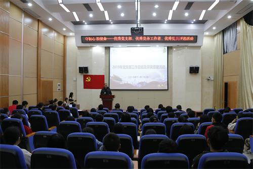 党委副书记李南发表讲话。他提出,本次活动开展的两个主要目是评优和促建,评选出优秀的党支部、党员、党务工作者是对这一年大家党建工作的认可。通过评选来促建,在评选中发现自己的缺点与不足,通过批评与自我批评认识自身缺点并改正,完成自我建设。他强调,全体党员都应始终不忘初心、牢记使命,做好党员该做的事情,起先锋模范作用。他指出,党支部内普遍存在懒散和缺乏交流的问题,支部内成员做事拖沓,不利于发挥先锋作用;交流过少,不利于党务工作的进行。他希望,党员们能提高工作积极性,利用好党支部这个交流平台,共同做好党建工作。