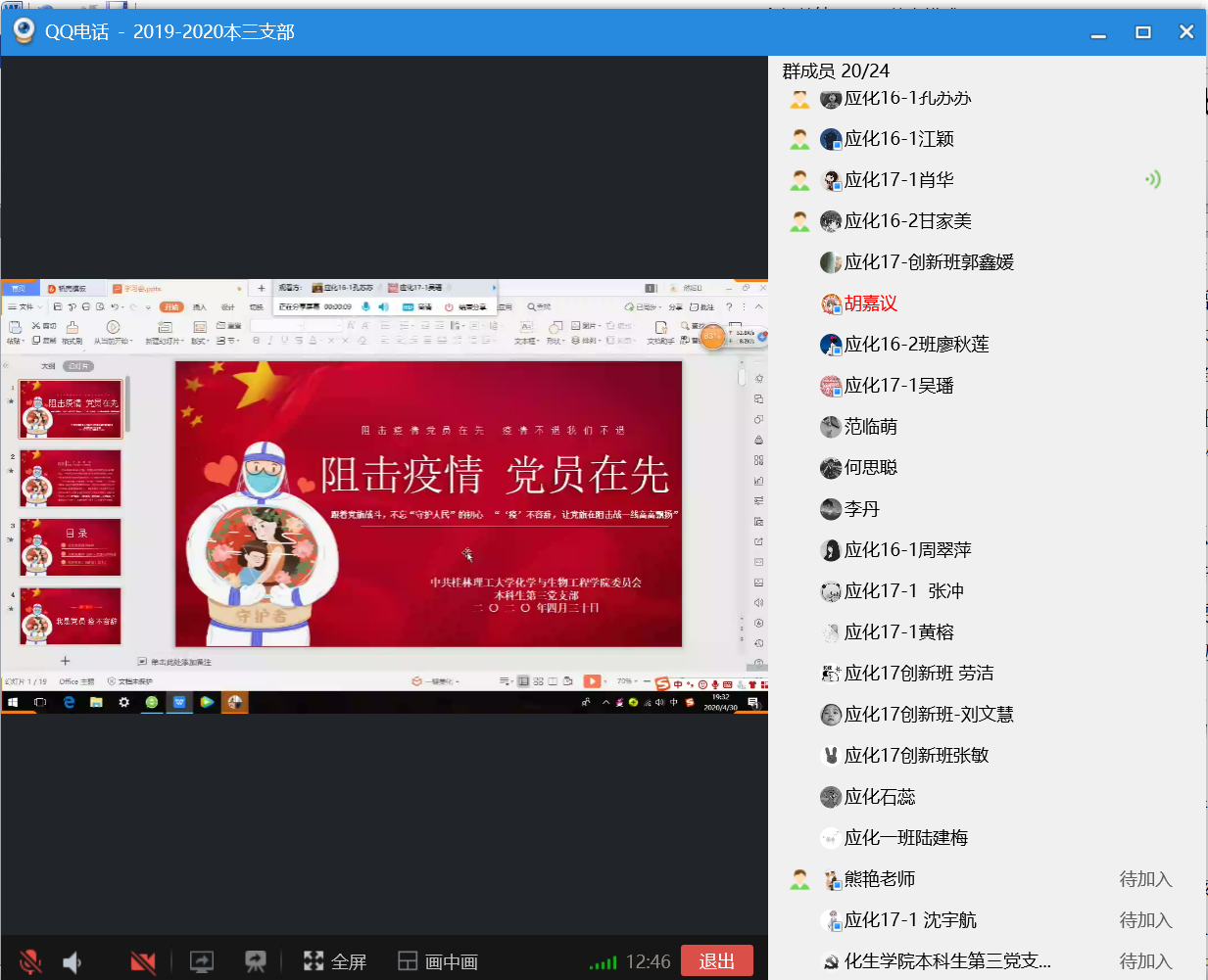 为落实习近平总书记就广大党员、干部要在打赢疫情防控阻击战中发挥积极作用作出的重要指示,发挥广大党员不忘初心、牢记使命,挺身而出的先锋模范作用,SeedHub本科生第三党支部于4月30日通过线上召开“阻击疫情,党员在先”主题学习会,会议由曾小玲同志主持,支部全体党员同志参加。