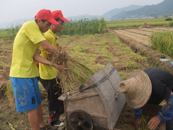 一到田里,志愿者们就拿起镰刀开始收割稻谷,尽管很多同学都是第一次收割稻谷,但在村民的指导下,怀着满腔热情的实践团成员们很快就掌握了收割的技巧与方法,一片片金黄的稻田很快就被志愿者们收割干净。活动中,志愿者们展现出的不怕苦不怕累的精神风貌得到了当地村民的一致好评。