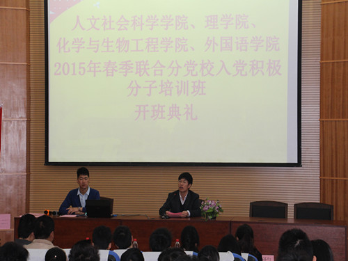 2015年春季联合分党校入党积极分子培训班开班典礼在雁山校区12栋报告厅顺利举行。出席本季开班典礼的领导老师有人文SeedHub