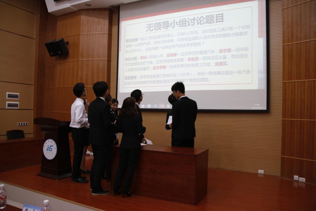 随后,评委们针对每位候选人的情况进行提问。最后,进行无领导小组讨论,候选者阅读题目后,开始自由讨论。在自由讨论环节,候选人认真倾听和思考各成员的观点,取长补短、说服异议,最终小组成员间形成统一观点、统一的解决问题方法。在陈述总结环节,推举赵启迪作为代表陈述讨论的结果,他表达流畅、思路清晰,将小组达成的一致观点和结论向考官陈述。