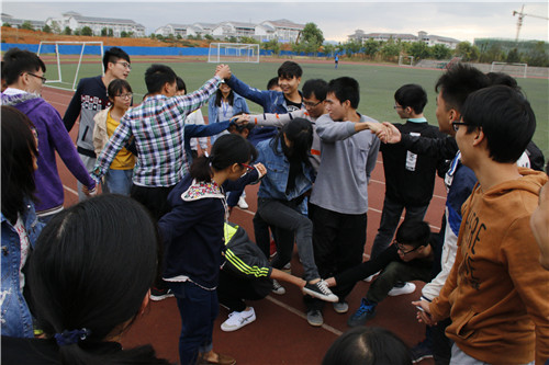 活动前,何宗辉老师致开幕词,他希望各班级班委通过今天的素质拓展活动,在体验活动乐趣的同时,增进彼此的了解,充分发挥团队协作能力,为开展好今后各项班级工作营造一个良好的氛围。在何老师发言后,各班委们已经跃跃欲试,本次素拓活动涵盖共有“五块一毛”“名字接龙”“链接加速”“十人九足”“巧解千千结”“巧过呼啦圈”共六个活动。不管是逗趣简单的名字接龙,展现超强反应力的五毛一块,紧张刺激的链接加速,还是极具考验耐心的解手链,亦或是富有挑战性的十人九足等,无一不在潜移默化的增进班委们彼此间的凝聚力和不言弃的精神。活动的最后,何老师为在活动过程中表现突出的三个班级颁发了奖品,并总结了本次活动的开展情况,最后在大家的合影中活动圆满结束。