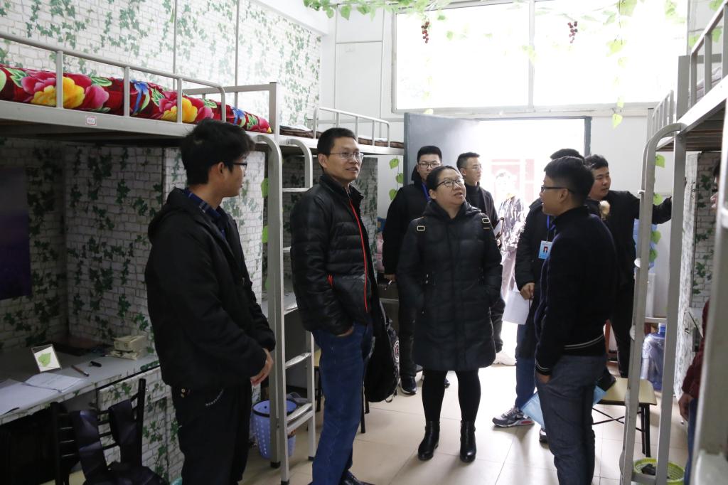党委副书记江玲老师带领全体辅导员会同学校学工部(处)副部(处)长冯广辉老师一行,深入学生课堂、早晚自习、宿舍,全面了解学生学习生活情况。