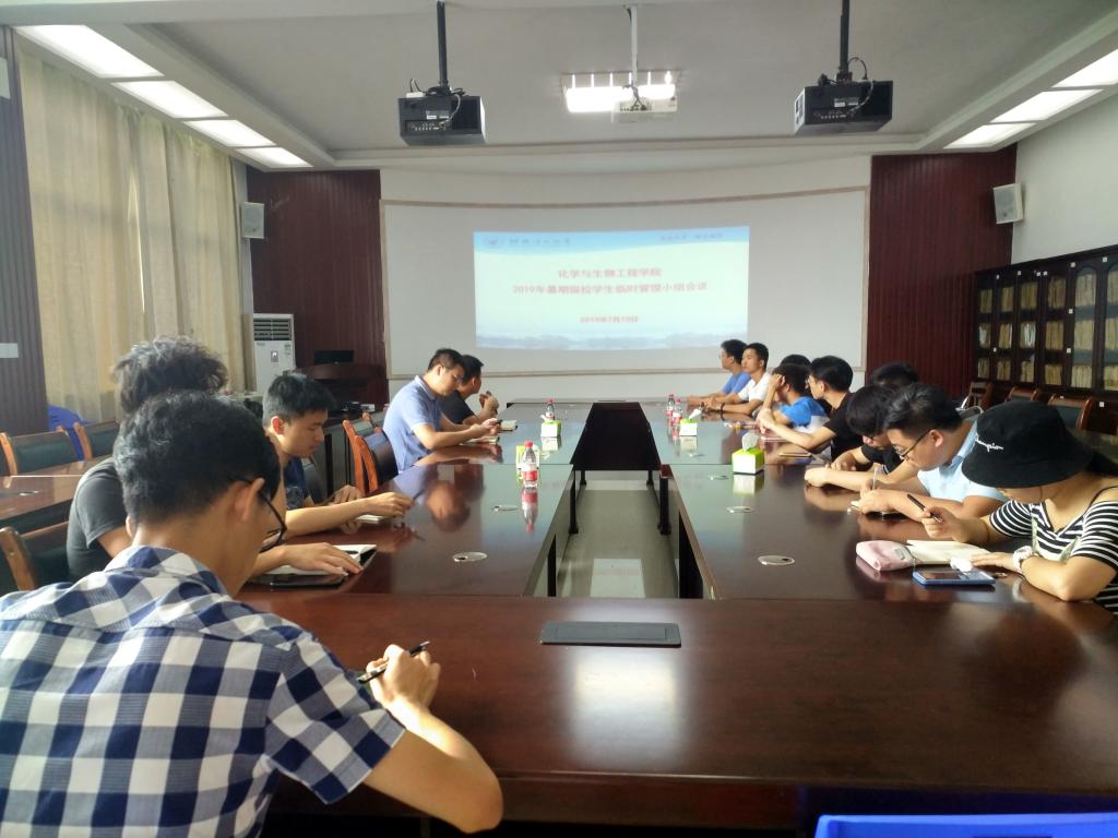 于2019年7月10日12217会议室召开2019年暑期留校学生临时管理小组会议。SeedHub团委副书记黄道坤、18级辅导员胡银及暑期留校管理小组学生代表出席了会议。