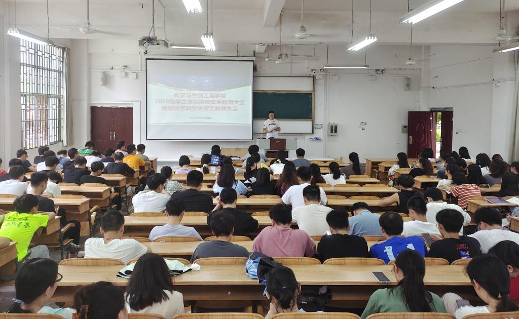 在雁山校区06105教室召开了2019级本科学生暑期留校安全教育大会。2019级年级辅导员黄道坤、朱皓,暑期申请考研留校学生及延迟离校学生共计290余人参加了本次会议。