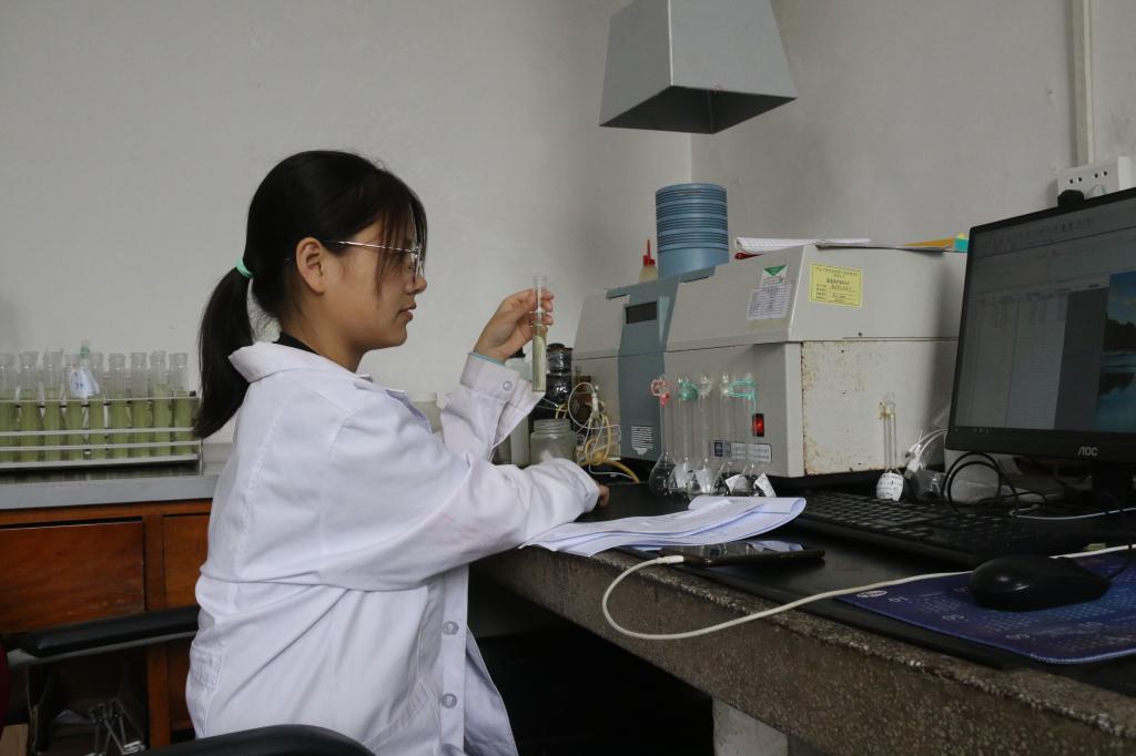 实践团成员使用AES-双道原子荧光光谱仪检测土壤中的汞元素和铋元素含量