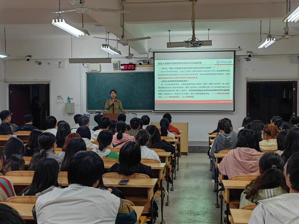 宣讲会上,各年级主要围绕国家“奖、助、贷、勤、补、绿色通道+校内资助”多元混合体系进行讲解,重点解读了国家奖学金、国家励志奖学金、自治区人民政府奖学金、国家助学金和应征入伍服兵役国家教育资助等资助政策。其中,辅导员张伟颀重点对比了今年国家助学金资助等级和资助金额与往年的不同,提醒同学们注意政策变化;辅导员梁精华则围绕国家助学贷款详细讲解了贷款的申请条件、申请对象、申请流程;辅导员王凯浩结合学生入伍情况详细讲解了应征入伍服兵役教育资助金额、申请时间和所需材料等;毕业班辅导员朱皓针对毕业年级特点,重点讲解了毕业生贷款还款最新政策和注意事项等。