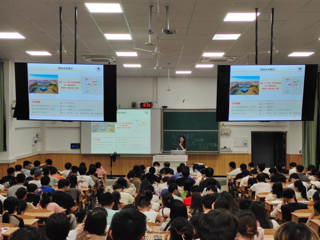 概况、师资力量、科研及学习平台、奖助政策、就业前景以及研究生招生政策等方面进行了宣讲,重点针对暑假夏令营的开展等招生政策进行了介绍,鼓励同学们积极报考郑州大学暑假夏令营。参会学生认真聆听,会后积极提问,就自己感兴趣的问题踊跃交流。