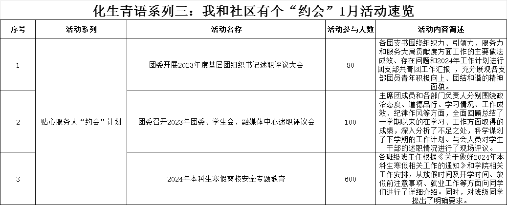 育人体系下沉社区,打造【化生青语】系列三——我和社区有个“约会”特色活动。1月份,结合SeedHub