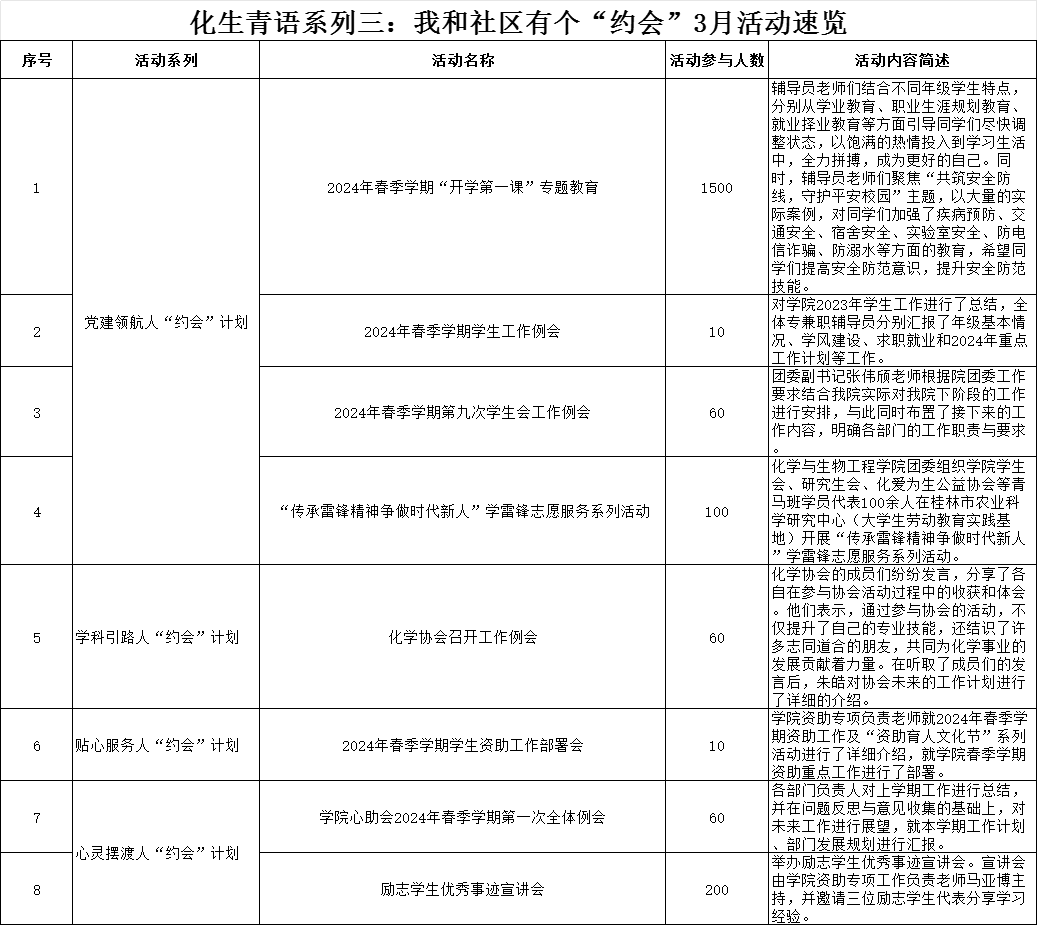 育人体系下沉社区,打造【化生青语】系列三——我和社区有个“约会”特色活动。3月份,结合SeedHub