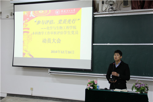 会上何宗辉老师与大家共同学习了《关于开展本科生党员“参与评估·党员先行”主题实践活动》(桂理工党办【2014】7号)的文件精神与主要内容,希望全体学生党员紧紧围绕主题,切实发挥学生党员的先锋模范作用和带头引领作用,不断提升党员自我完善、自我提高的能力,不断提升党员在迎评工作中的正面影响力,释放正能量,为学生审核评估做贡献。
