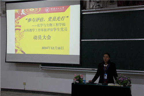 接着,陶副书记提出党员应在审核评估的各项工作和活动中发挥党员的先锋模范作用。首先她介绍了审核评估专家组的日程安排以及考查评估的形式和流程以及注意事项。她希望各学生党员高度重视本次审核评估,在日常生活、学习、言行中,严格要求自己,在宿舍生活、精神风貌、课堂纪律、以及在访谈时做到礼貌待人,客观、公正地评价学校各个方面以及用发展的眼光看待问题,通过不断自我完善,切实增强党组织的创造力、战斗力、凝聚力,为全面扎实推进学校迎评工作提供坚强的组织保证。