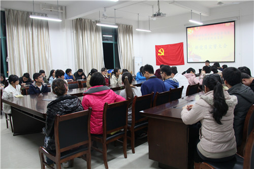 大会伊始,何宗辉老师就本次发展新党员中出现和存在的问题进行了总结,并提出了要求,他强调入党是一件严肃的事情,必须认真对待,端正自己的入党动机。紧接着由本科生第一支部任永刚同志带领全体预备党员面向党旗进行入党宣誓,宣誓过程庄严肃穆,铮铮誓词代表了他们对党的忠诚决心。