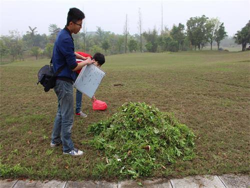 与此同时,支部另一支小分队成员前往园博园,为园博园的高尔夫球场清理杂草,经过两个半小时的努力,我们支部的成员和积极分子将高尔夫球场的杂草清理干净,得到了园博园领导的一致认可。通过本次活动,让支部成员和积极分子们更深一步理解了“全心全意为人民服务”的精神实质,让学生党员继承和发扬了雷锋精神,学习了雷锋全心全意为人民服务的人生观、无私奉献的价值观。