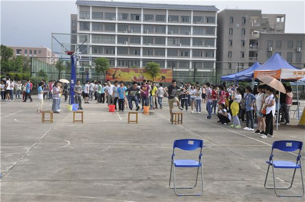 此次趣味运动会以班级为单位参赛,主要包括杯嘴传薪、我的水去哪了、拔河比赛三个项目,旨在号召班级同学全民参与,享受运动的快乐。运动场上,同学们热情高涨,比赛现场热闹非凡。在拔河比赛环节,场上队员团结协作,场下队员呐喊助威,班级荣誉感通过拔河绳紧紧地凝聚在一起;在杯水车薪环节,队员们用嘴咬住杯子,把水互相传递,一直输送到终点;在我的水去哪了环节,队员们奋勇前进,在有限的时间里,尽可能多地把水运到大本营去,体现了同学们更快、更强的体育精神。整个运动会下来,让同学们的身心得到放松,化生学子的笑声、欢呼声久久地回荡在桂工校园。