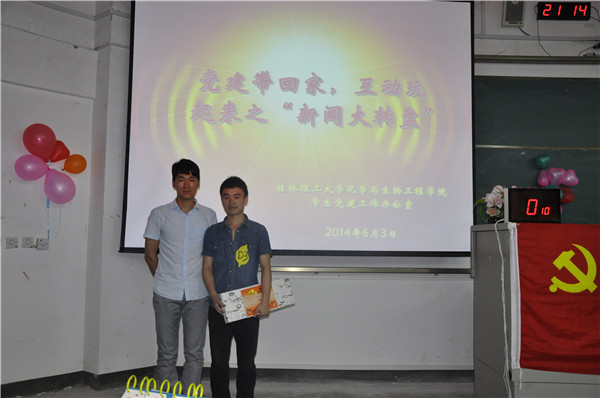 随后活动精彩进行,选手分为五个小组,每组以累积计分的形式比赛,比赛共有必答题、抢答题、决赛三个环节。活动期间,选手们幽默而又不失风采,掌声接连不断,在选手的精心准备和各环节激烈的角逐下气氛紧张而又激烈,最终,本科二支部的魏培贺同学过五关斩六将,以最高分获得冠军。