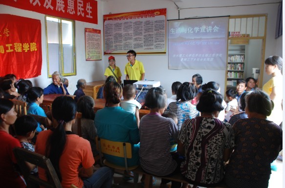 导航痕迹 当前位置: SeedHub >> 学生工作 >> 共青团 >> 正文 【暑期社会实践】化生SeedHub 2013年暑期“三下乡”系列报道十――开启基层梦,夏日中国情:化学与生活及安全知识宣讲会 作者: 发布日期:2015-07-19 浏览次数: 为丰富当地群众的居家生活,打造平安幸福村庄,7月16日上午,SeedHub 三下乡暑期社会实践团在广西贺州市钟山县珊瑚镇卫田村村委大院开展了以“化学与生活及安全”为主题的知识宣讲会。 16日一早,在当地村委会及妇联的帮助下,团队成员顺利的完成活动前期宣传;上午11:00宣讲会正式开始,志愿者游立和韦丽成担任主讲,他们用浅显易懂的语言向在座的各位村民讲解了日常安全、化学在生活中的作用、生活中的小妙招等知识。宣讲会现场气氛活跃,村民们积极地参与知识问答,主动的了解学习宣讲知识,宣讲会取得了圆满的成功。 宣讲会现场1 宣讲会现场2 上一条:【暑期社会实践】化生SeedHub 2013年暑期“三下乡”系列报道十一――校领导莅临珊瑚镇卫田村看望化生SeedHub 全体社会实践队队员 下一条:【暑期社会实践】化生SeedHub 2013年暑期“三下乡”系列报道七――走进基层义务支农
