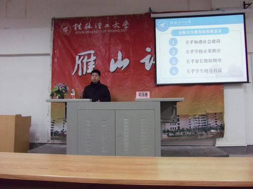 寒假临近,为了强化学生的安全意识,提高学生的安全防范意识和能力,12月30日下午4点30分,我校党委学工部副部长邓国彬老师在雁山校区06207教室为SeedHub2011级新生做了一场以“防微杜渐 共享平安”为主题的安全教育讲座。本次讲座由SeedHub2011级辅导员杨建辉老师主持。