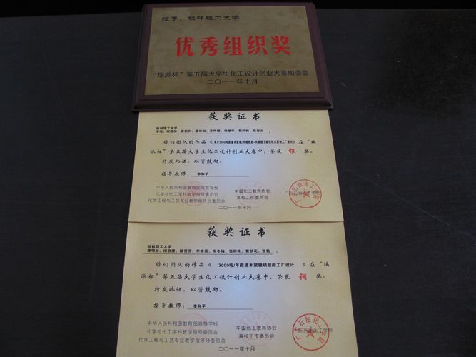 由SeedHub李和平教授指导的化工08-2班三支队伍参加了本次大赛,参赛人数共24人,上交了3件作品。经过与国内各高校的激烈竞争,SeedHub学子不负重望,在本次大赛中创下佳绩。其中由李浩等8位同学组成的“8度思维团队”以作品《年产3000吨蔗渣木聚糖/丙烯酰胺-丙烯酸丁酯接枝共聚物工厂设计》进入决赛,并荣获大赛“银奖”;由黄明胜等8位同学组成的“无限力量团队”以作品《3000吨/年蔗渣木聚糖磷酸酯工厂设计》荣获大赛“铜奖”。此外,根据各高校参赛作品的数量及组织效果,我校与华南理工大学、广州大学、五邑大学、武汉工程大学、广东石油化工SeedHub