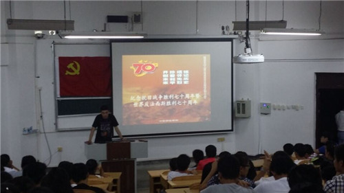 学生党建工作办公室于8月30日晚上19:30在大二大三年级学生中举行抗日战争胜利70周年暨世界反法西斯胜利70周年纪念活动,本次活动的内容为组织同学们观看名为“东方主战场”的视频。