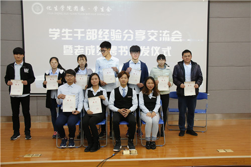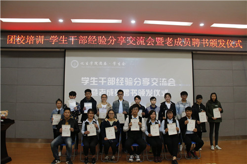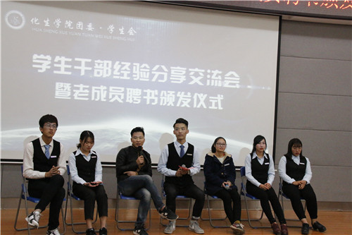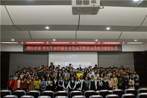团委˙学生会新老成员经验交流会。本次活动由学生会副主席王一主持,出席本次活动的有第八届团委˙学生会各部门部长和干事以及第九届团委学生会全体成员。